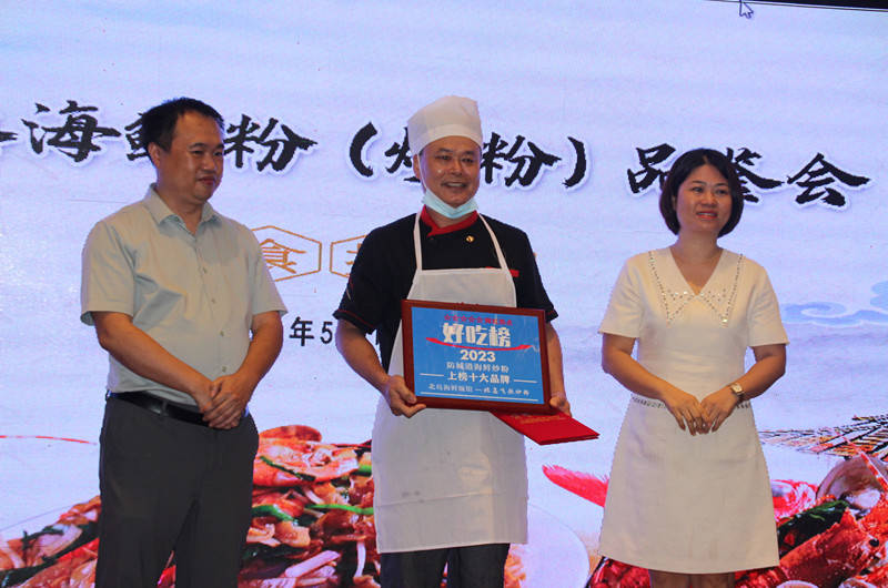 防城港海鲜粉(炒粉)八家上榜企业获得了牌匾、证书。