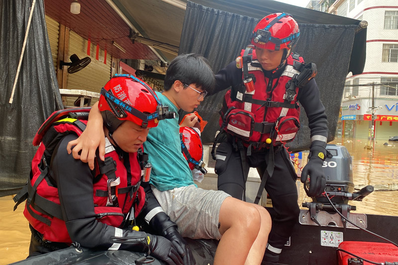 6月26日上午7时许,受道路积水影响,玉林北流市六靖镇有中考考生滞留在家,家长无法送考生到校考试。消防救援人员来到一名考生家中,发现洪水已经过膝,两名消防救援人员合力将该名考生抱至冲锋舟上,随后用冲锋舟转移至安全地带。在转移这名中考学生时,为缓解考生的紧张情绪,消防救援人员亲切地与他交流,并鼓励他考试加油。截至26日7时30分,消防救援人员一趟接一趟,成功转移中考考生4名。(曾阳 文雅莉)