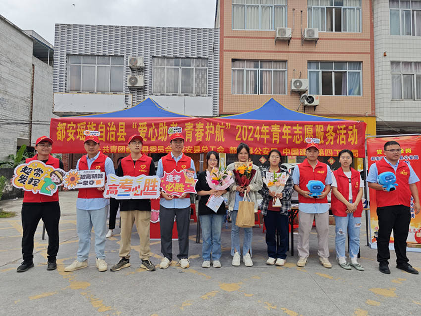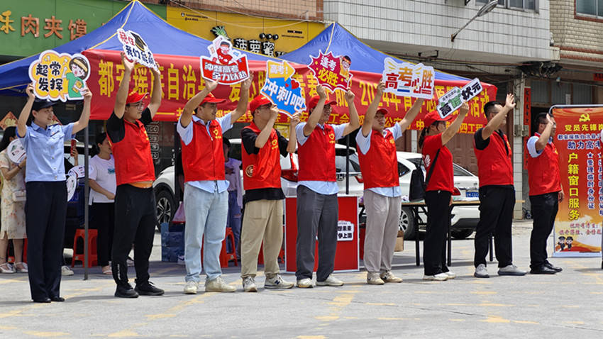 都安县人民医院项目志愿者们为考生加油助力。毛勇江摄