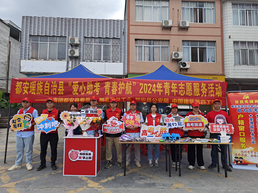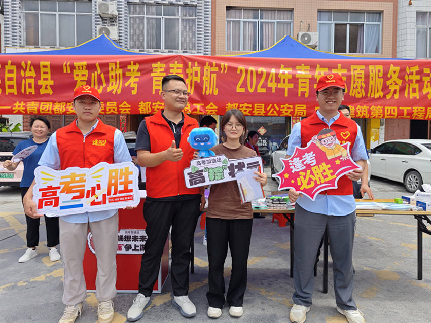 6月7日,中建四局广西建设投资有限公司都安县人民医院(二期)项目联合共青团都安县委员会、都安县总工会以及都安县公安局共同举办都安瑶族自治县“爱心助考 青春护航”2024年青年志愿服务活动。