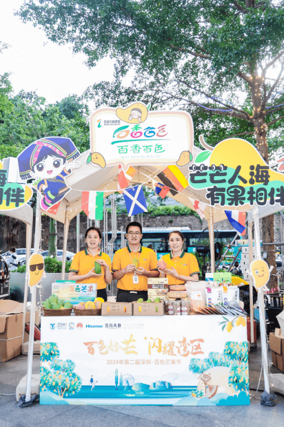 律动鹏城、足够惊艳。7月12日-13日,活动现场推出“茫茫人海,有果相伴”芒果创意市集,由海信、深圳手信、天虹、华润万家、洽客科技、壹点壹客、萃小爱等深圳企业携手农林集团、农派三叔、田阳嘉佳、富农农业、隆林红姐、壮满农业、农创优鲜、六联四通坊、小子很芒等百色企业共同打造,为大家带来芒果鲜果、芒果干、芒果酒、芒果冰糖葫芦、芒果慕斯蛋糕等美食美酒体验。同时2024年欧洲杯赞助商——海信,携旗下璀璨豪华阵容,以广西百色绿水青山为背景打造4大体验场景,现场参与欧洲杯竞猜以及与海信系产品互动打卡 射门踢球可获得惊喜福利。