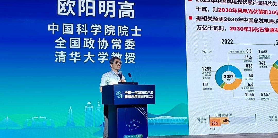 广西百色讯 9月4日,中国—东盟氢能产业基地揭牌暨签约仪式在百色举行。自治区、市领导及氢能产业企业、行业组织、科研机构等专家和嘉宾100名代表共聚百色,共同探讨氢能产业发展趋势,推动氢能产业高质量发展。中国科学院院士、全国政协常委、新能源动力系统与交通电动化专家、清华大学教授欧阳明高,中国信息产业商会会长聂玉春,中关村氢能与燃料电池技术创新产业联盟秘书长卢琛钰等领导出席并共同为基地揭牌。欧阳明高院士发表主旨演讲。中国信息产业商会会长聂玉春在会上讲话。百色市市长葛国科,自治区发展改革委二级巡视员陆赞在会上致辞。百色市政协主席石国怀出席活动。 会议由百色市委常委、市人民政府副市长李玉成主持。 葛国科代表百色市委、市政府向出席本次活动的领导、嘉宾表示热烈的欢迎和衷心的感谢!葛国科说,百色是一座拥有光荣革命传统和厚重历史文化的英雄城市,也是一座充满发展活力的魅力之城。葛国科指出,当前,百色正深入贯彻落实习近平总书记关于广西工作论述的重要要求,按照广西推进铸牢中华民族共同体意识示范区建设、打造国内国际双循环市场经营便利地和粤港澳大湾区重要战略腹地、建设沿边临港产业园区、高水平共建西部陆海新通道的“一区两地一园一通道”战略部署,大力培育新能源、新材料等新兴产业,积极布局氢能制备等未来产业,因地制宜发展新质生产力。随着国家、自治区层面对氢能产业发展支持力度的持续加大,越南等东盟国家越来越重视氢能发展,百色迎来了氢能产业发展的重大历史机遇。目前,百色正依托中国—东盟产业合作区百色片区建设,大力推进氢能产业招商引资和园区建设,与中电产业发展(广西)有限公司合作,推动中电百色能源电子产业园项目落地,项目一期引进北京亿华通,建设氢燃料电池发动机生产基地及氢能装备产业基地。 葛国科表示,百色将依托资源、政策、区位优势,紧紧围绕氢能的生产制备、储存运输、基础设施、燃料电池、氢燃料电池汽车和示范应用六大领域,着力引进上下游产业链项目,建设“中国—东盟氢能产业研究院”,打造氢能产业从研发到制造的产学研用完整闭环,高水平建设中国—东盟氢能产业基地。希望各位嘉宾通过本次大会倾授睿智良策、汇聚发展合力,促进更多氢能新技术、新应用、新项目在百色落地,携手共享合作新成果、共创产业合作新未来! 会上,陆赞代表自治区发展改革委对活动的成功举办表示热烈祝贺。他说,本次活动邀请大量区内外氢能产业链上下游企业、科研机构、行业协会参加,这是广西氢能产业第一场由政府和企业共同举办的“里程碑”式活动,是贯彻落实习近平总书记关于广西工作论述的重要要求,加快实现“碳达峰、碳中和”要求,推进能源生产和消费革命,落实国家《氢能产业发展中长期规划(2021-2035 年)》的重要举措。本次活动的举办也彰显百色市委、市政府联合各方共同推动绿色发展的责任担当,是百色市因地制宜培育新质生产力,前瞻布局未来能源,促进全区氢能产业高质量发展的具体举措。中国—东盟氢能产业基地的建设,是顺应时代潮流、推动区域能源转型的重大举措,对于广西建设国家综合能源安全保障区,促进经济可持续发展、加强东盟国际能源合作具有深远意义。 陆赞指出,党的十八大以来,国家对氢能产业的支持力度持续加大,《中共中央 国务院关于加快经济社会全面绿色转型的意见》、《2030年前碳达峰行动方案》等政策文件先后出台,将氢能定位为未来国家能源体系的重要组成部分。我区印发《广西氢能产业发展中长期规划(2023—2035年)》等政策文件,为氢能产业发展中创造良好的政策环境和发展空间。陆赞希望,中国—东盟氢能产业基地以此次揭牌和签约为新的起点,为广西乃至东盟地区氢能产业发展做出更大的贡献;也希望各方继续加强合作,共同努力,将中国—东盟氢能产业基地打造成为国际一流的氢能产业示范基地。 在会上,欧阳明高院士作了《新能源革命与绿色氢能发展》主旨演讲。欧阳明高院士重点从低碳发展愿景与中国能源革命,氢能与燃料电池关键技术研发,氢能与燃料电池发展前景展望等三个方面,讲述我国氢能产业发展面临的优势与挑战、关键技术研发、未来趋势、前景展望。他说,在电源端方面,近年来,我国可再生能源实现跨越式发展,装机增量全球第一,光伏出货量占全球近70%。2023年全国风电光伏累计装机约为10.5亿千瓦,而2023年风电光伏新增装机2.93亿千瓦。如果今后7年每年平均新增2.93亿千瓦,则2030年风电光伏装机将达到30亿千瓦,发电量将超过4万亿千瓦时,届时风光发电量将占35%以上,加上水电、核电和生物质发电量2.67万亿千瓦时,2030年非化石能源发电量占比将达到60%。 随着风力、太阳能发电量比例的提升,以及新能源汽车市占率的快速提升,城市配电网络难以适应,不堪重负,而且随着充电功率的提升,对电网会带来更大的冲击。因此,配备储能的重要性日益显著,以储能为核心的新型电力系统蒋迎来发展机遇期,带动新型储能产业腾飞。对此,欧阳明高院士指出,下一个二十年是新能源全方位变革的时代,不仅要发展新能源汽车,还要把新能源汽车、光伏、风电、储能、氢能结合起来,形成相互协同的整体解决方案,重点聚焦电池储能、绿色氢能、智