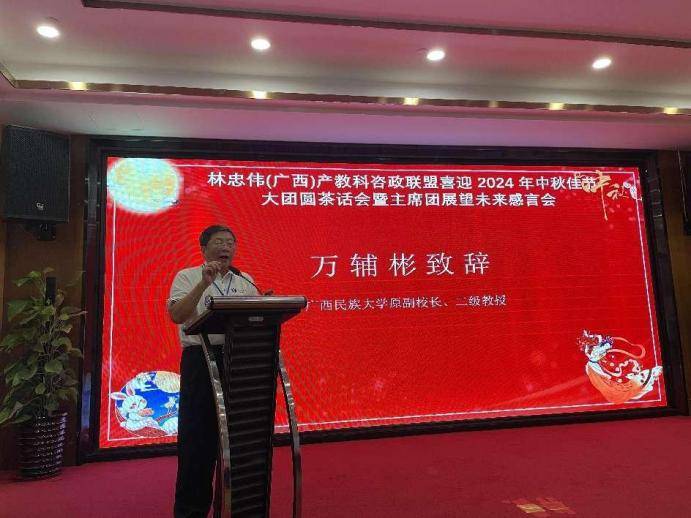 作为咨政联盟总顾问,全国著名学者、广西产学研科学研究院院长、广西民族大学原副校长、二级教授万辅彬激情四射的感言道:“我们咨政联盟自去年六月成立以来,已有一年零三个月了,在林忠伟主席和主席团的带领下,做了许多实事好事,回顾过去,成绩斐然,展望未来,豪情满怀,在这迎中秋大团圆的喜庆日子里我说六句话: