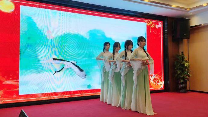 开场是歌舞活动。随着一曲悠扬的古筝独奏《平湖秋月》缓缓响起,活动正式开场。音符跳跃间,仿佛能穿越千年时光,带我们回到那个古人对月吟诗、寄托情思的年代。四位主持人古诗引场: