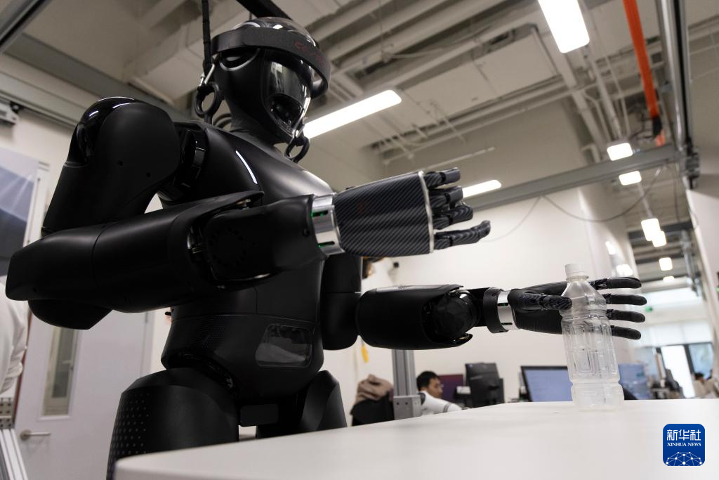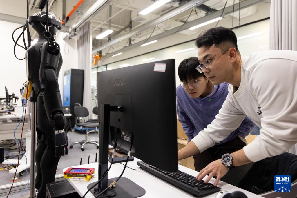 11月12日,科研人员在位于北京的实验室调试人形机器人“CASBOT 01”。