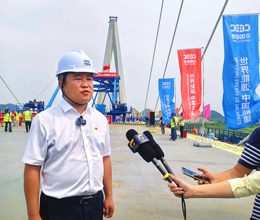 中国能建葛洲坝一公司横钦高速总承包项目部党支部书记、常务副经理刘权厚接受采访