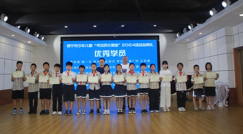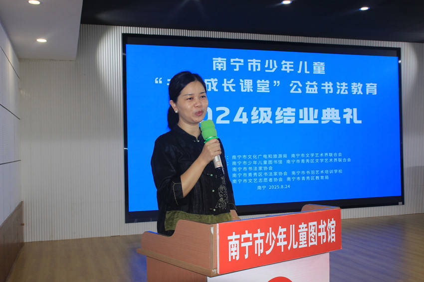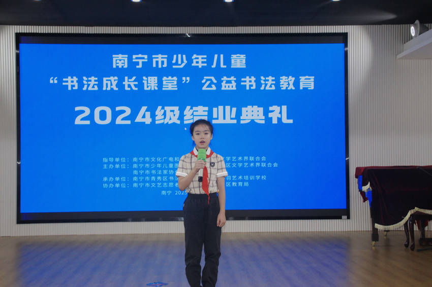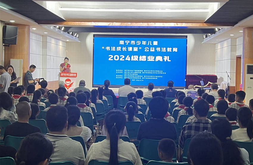 8月24日,南宁市少年儿童“书法成长课堂”公益书法教育2024级结业典礼暨“绿城翰墨、薪火传承”——第十届“书法成长课堂”学生书法作品汇报展在南宁市少年儿童图书馆成功举办。
