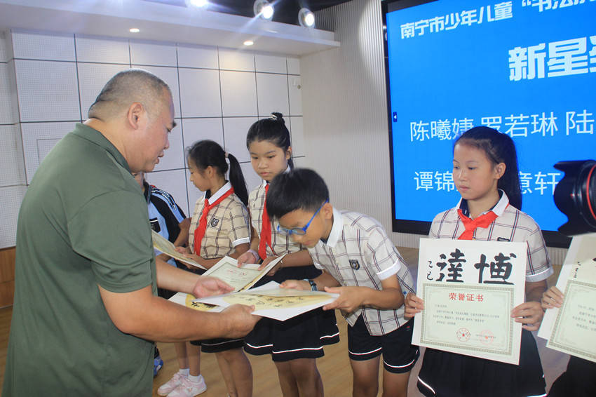 据悉,南宁少年儿童“书法成长课堂”是在南宁市文化广电和旅游局、南宁市文联积极倡导支持推动下,联合南宁市书法家协会、南宁市书法家协会、南宁市少年儿童图书馆、南宁市工人文化宫、南宁市书羽艺术培训学校等共同打造的公益书法教育平台。学生通过城区各小学推荐与公开公正面试选拔入学,享受为期一学年的公益书法培训,自2015年创办至今已连续办学十一年。“书法成长课堂”致力于弘扬中华传统文化艺术,推动和普及书法基础教育,培养青少年对书法艺术的热爱,提升其文化素质与艺术修养,为南宁市少儿书法教育事业的蓬勃发展不断贡献力量。