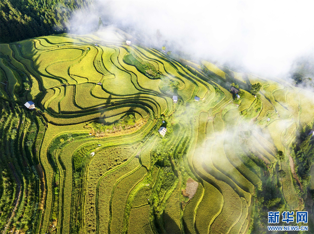 8月27日,在贵州省从江县加鸠镇加鸠村拍摄的梯田(无人机照片)。新华网发(吴德军 摄)