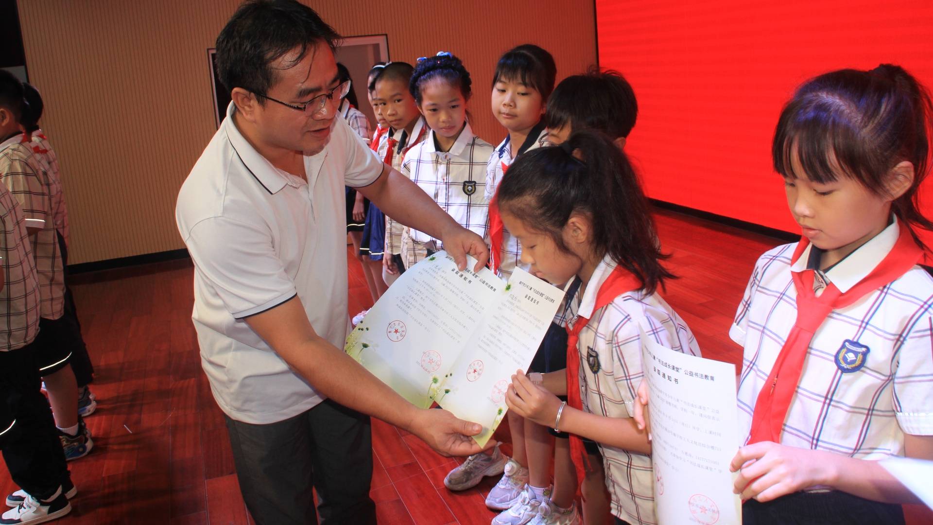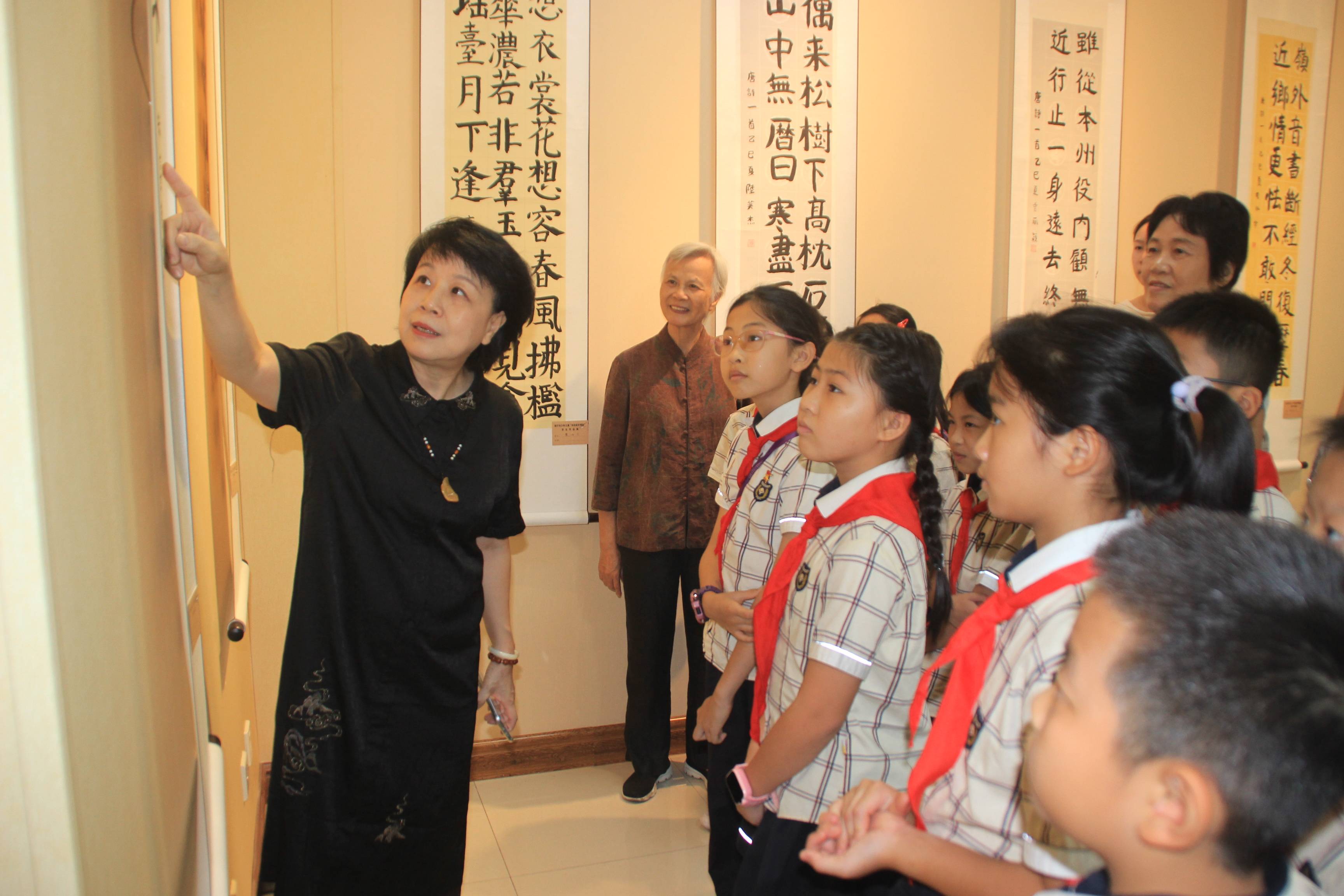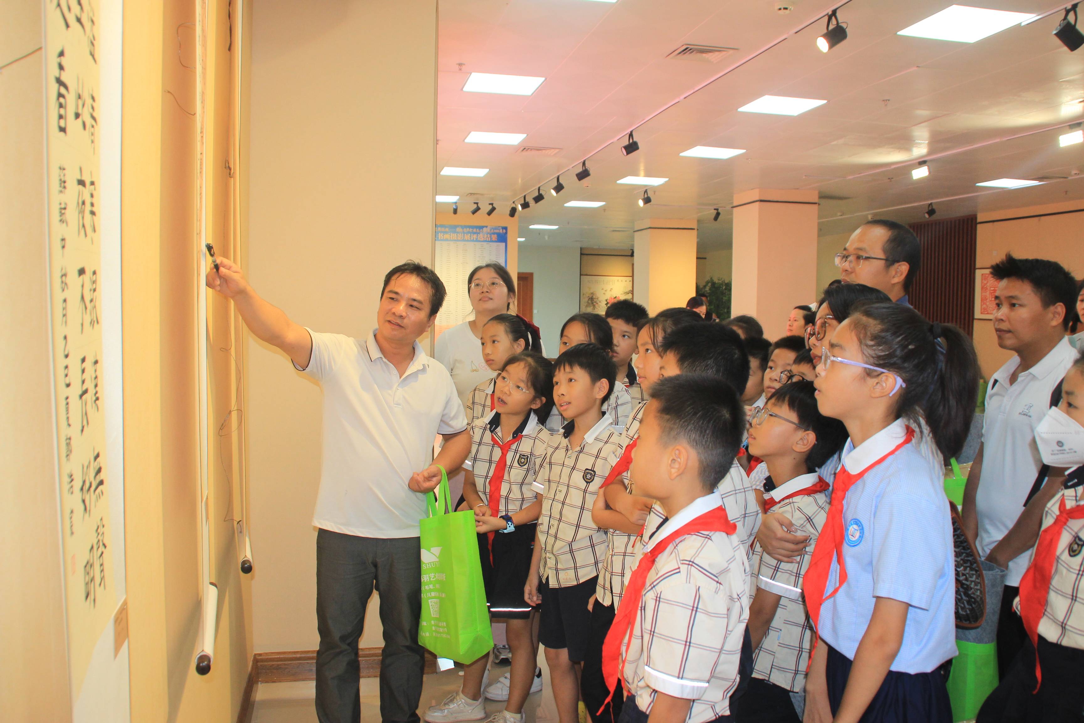 活动当天,老师和学生还一起参观了第十届“绿城翰墨、薪火传承”——南宁市少年儿童“书法成长课堂”学生书法作品展。老师现场为同学们讲解了隶书和楷书的风格和特点,为孩子们上了一堂生动的书法课。