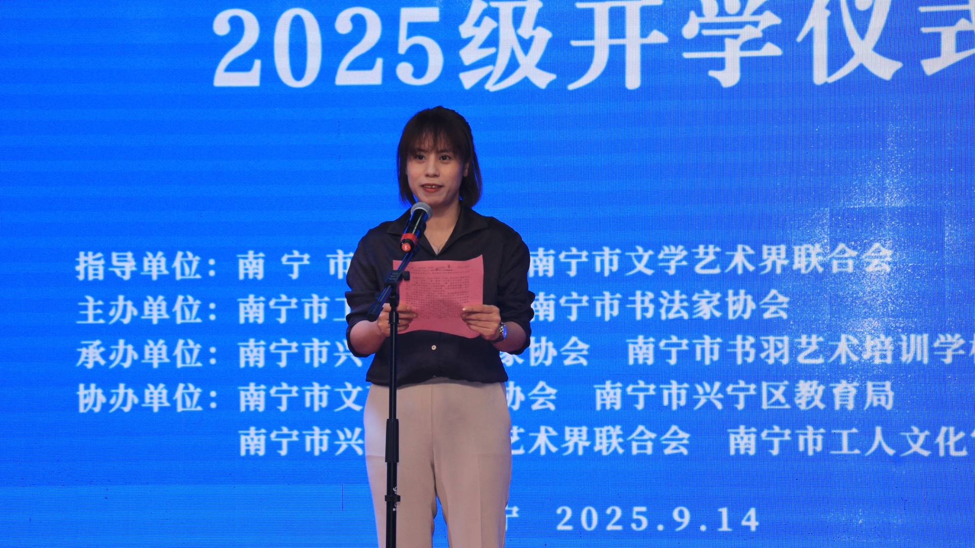 广西书法家协会副主席、南宁市文联副主席、南宁市书法家协会主席潘继坦;南宁市工人文化宫副主任李洁;广西书法家协会原副主席、南宁市书法家协会常务副主席刘小静;南宁市书法家协会顾问、原主席,南宁市书羽艺术培训学校校长陈小冰;南宁市书法家协会副主席黄成文;广西女书画家协会理事、南宁市书羽艺术培训学校副校长钟红雨;兴宁区文联主席陈宇锋;兴宁区教育局体卫艺股股长卢伟仕;兴宁区书法家协会主席韦忠相;南宁市书法家协会理事、青秀区书法家协会副主席王亚曦;广西女书画家协会理事,青秀区书法家协会副主席卢梅珍等出席本次活动。参加本次活动的还有:南宁市工人文化宫、南宁市书法家协会、南宁市书羽艺术培训学校、“书法成长课堂”2025级各位老师、家长、同学约120余人!此次活动由何朋阳主持。
