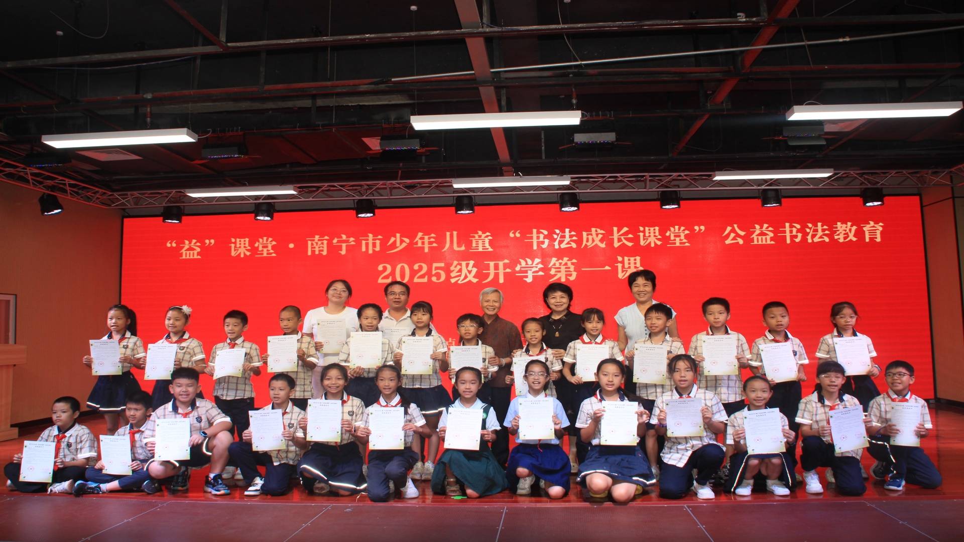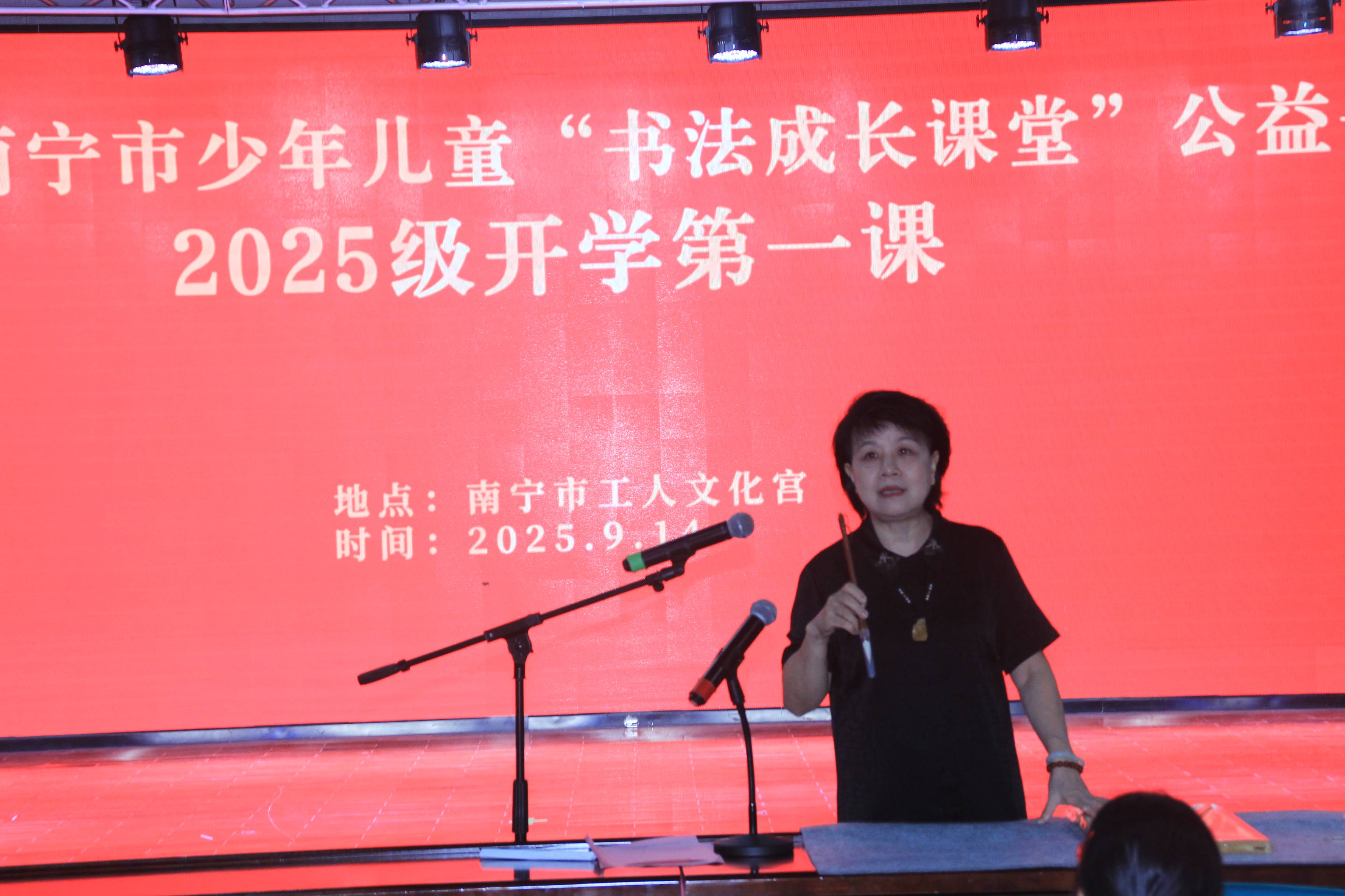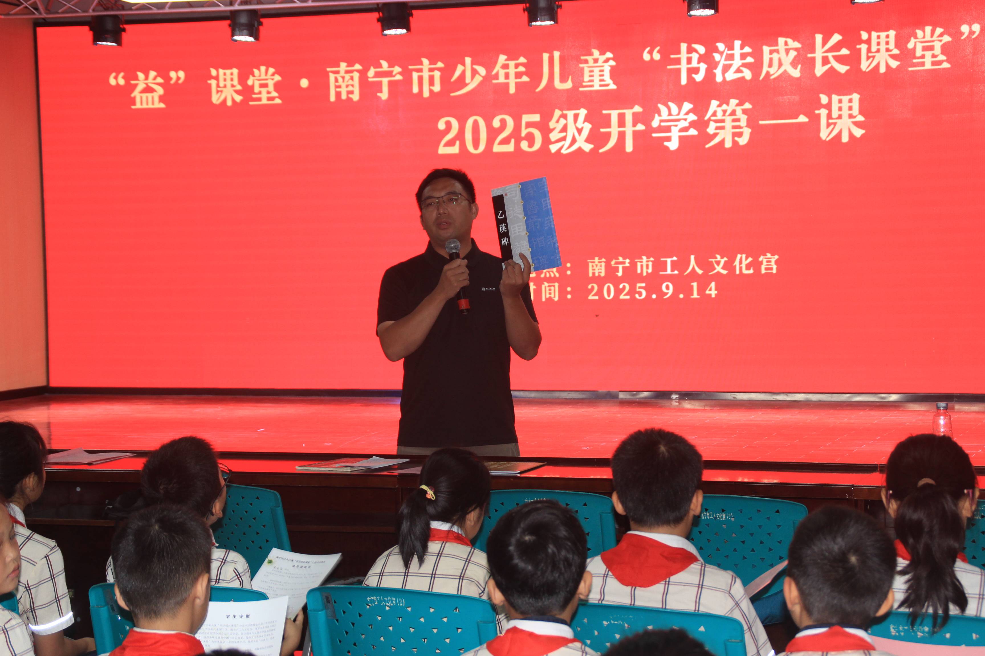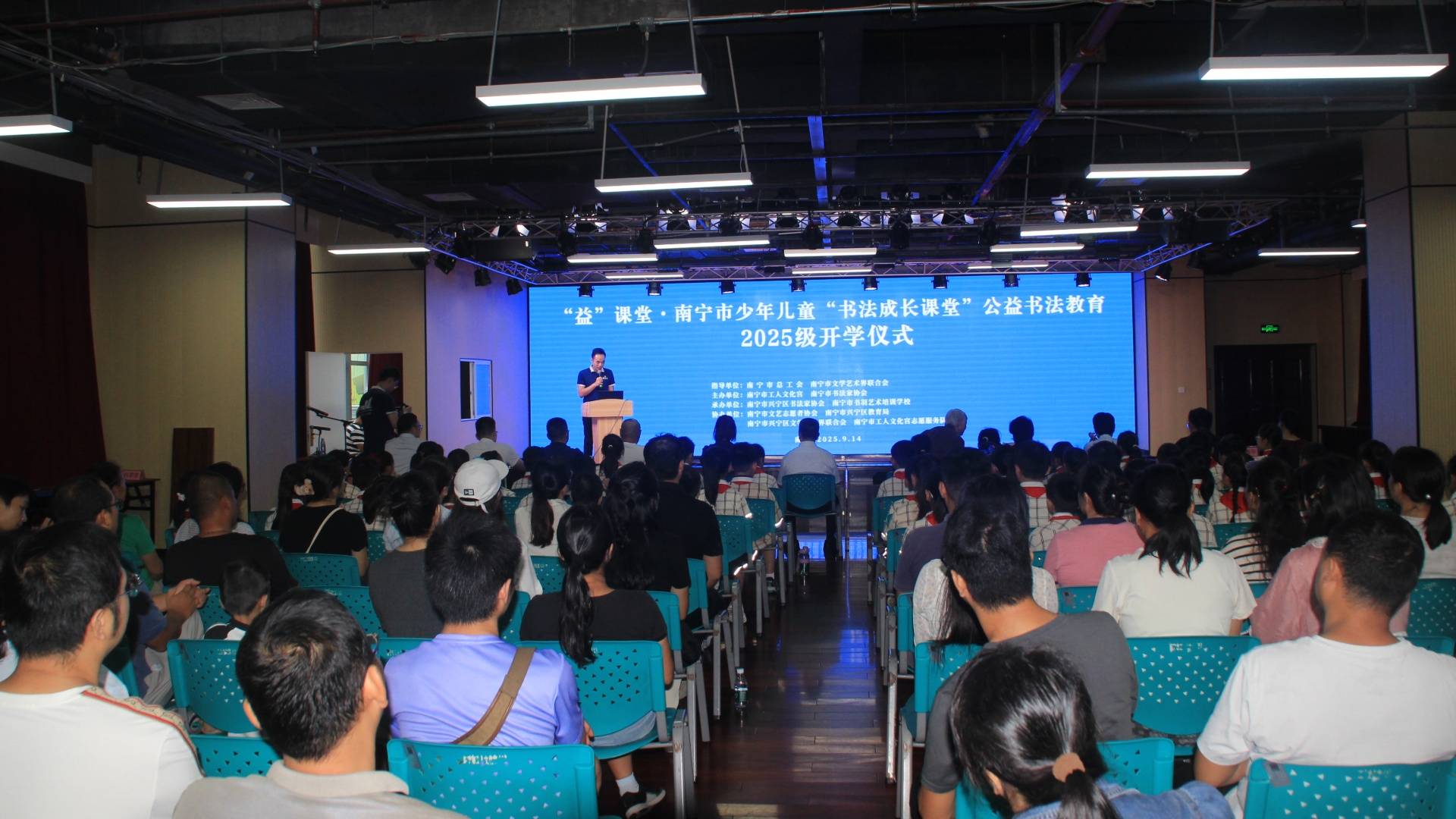 2025年9月14日上午,“益”课堂·南宁市少年儿童“书法成长课堂”公益书法教育2025级开学仪式在南宁市工人文化宫隆重举行。