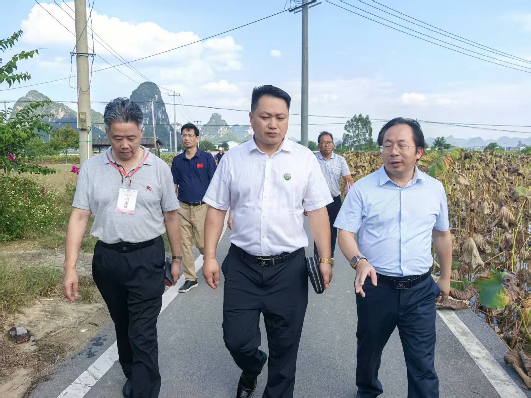 次日下午,唐勤福副主任一行又不辞辛劳地从柳州市柳南区螺蛳粉小镇乘车到相距50多公里的柳州市柳江区百朋莲花小镇AAAA农业景区进行指导工作。