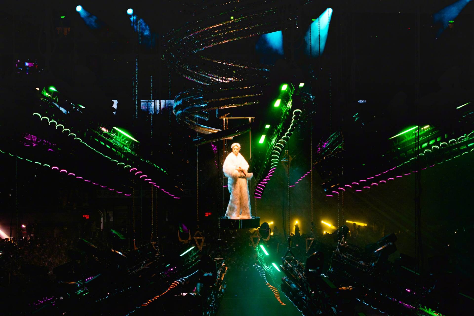 作为曾斩获缪斯设计奖、德国iF设计奖等多项国际权威奖项的舞美IP,本次舞台通过精密机械装置与光影系统的协同,升级呈现360°沉浸式观演空间。演出中,光影随曲风精准切换,《黑白艺术家》《七重人格》的能量漩涡光影、《温暖的房子》的具象化光影构建等,与歌曲意境完美契合。此外,《风之海》全新冬日版舞美,梦幻的冰雪世界,灵动的动物元素,都为现场增添了别样的视觉惊喜。