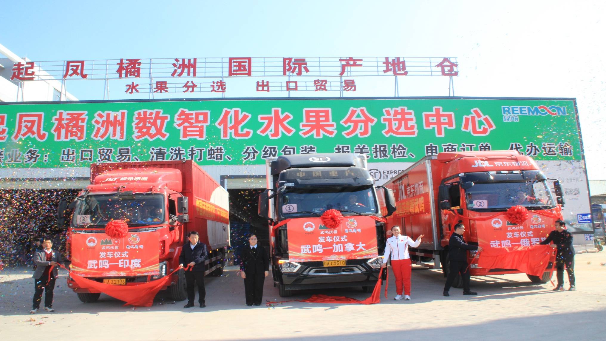 广西南宁讯(本刊记者张春梅 闭冬先 张瑞轩报道)1月8日,南宁北农产品交易中心起凤橘洲数智化水果分选中心门前,三辆满载着被誉为“北纬23°味觉奇迹”的武鸣沃柑的大货车鸣笛启程,直奔俄罗斯、加拿大、印度等海外市场,正式拉开武鸣沃柑2025/2026销售季的序幕。
