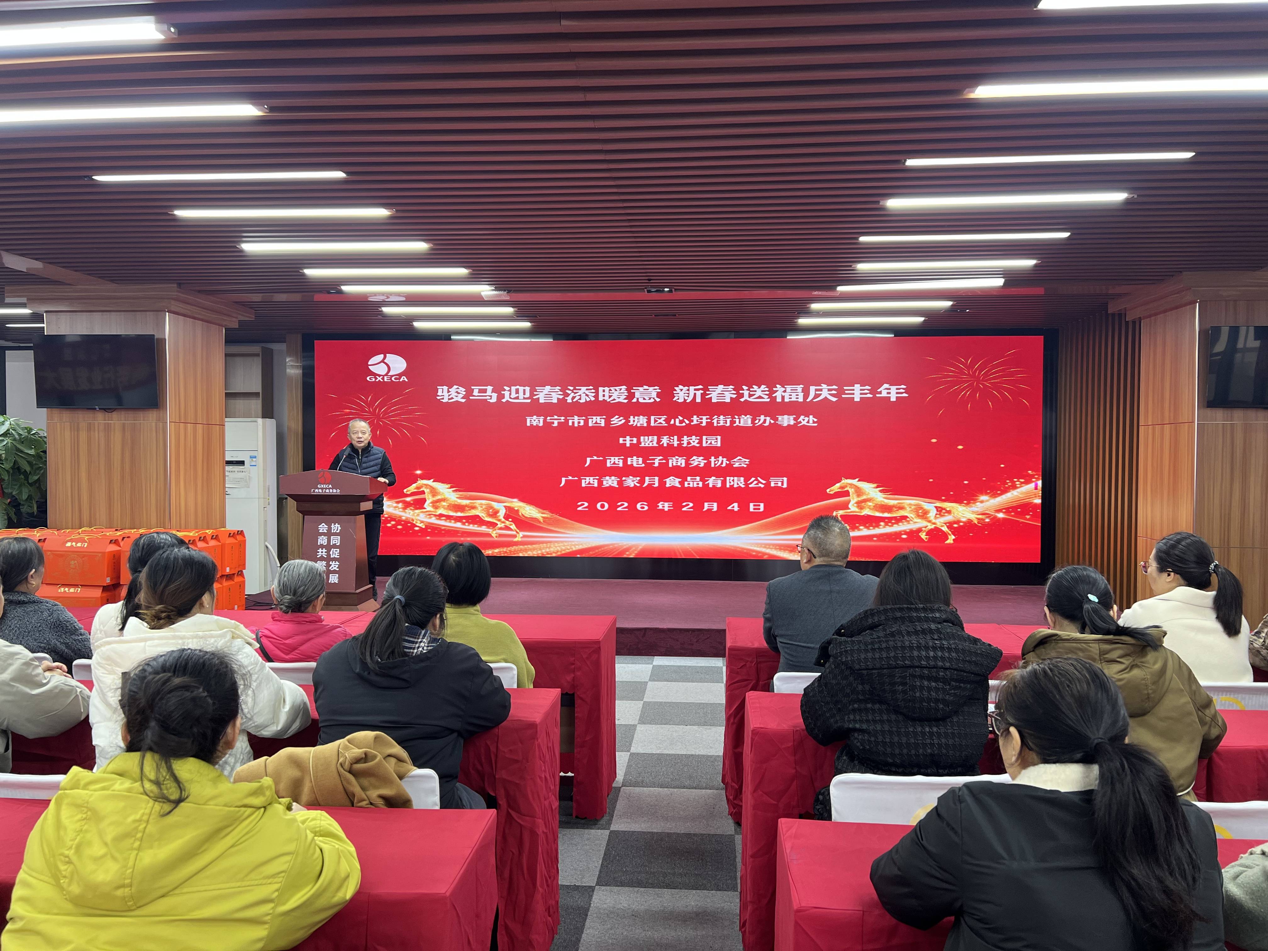 2月4日,为营造奉献、友爱、互助、和谐、健康、喜庆的节日氛围,广西电子商务协会联合广西黄家月食品有限公司、南宁市西乡塘区心圩街道办事处、中盟科技园,共同举办了一场“骏马迎春添暖意,新春送福庆丰年”主题公益活动。活动以文化惠民、关爱慰问为主要形式,联动政企社多方力量传递企业温暖、服务社区群众,喜迎丙午马年新春佳节。 活动现场暖意融融、年味浓郁。50余名社区群众有序领取由广西黄家月食品有限公司准备的爱心年货大礼包,收获实用暖心的新春物资;活动还特邀邕城书法家现场挥毫泼墨,一笔一画书写福字与春联,将吉祥寓意与新春祝福凝于笔端,免费赠予到场居民,墨香与笑语交织,让传统年俗文化走近群众身边。 集中活动结束后,广西电子商务协会与心圩街道办事处工作人员组成慰问小组,前往金宇新城小区开展特殊家庭上门慰问。工作人员为居民张贴红彤彤的福字与春联,细致布置新春装饰,与居民亲切交流、送上节日问候,把关怀与喜庆送到家门口,切实提升社区群众的幸福感与归属感。 本次公益活动紧扣新春节点,整合行业协会、爱心企业、街道园区资源,既以实物慰问保障民生温度,又以书法送福传承传统文化,实现物质帮扶与精神关怀双覆盖。 此次活动以多元形式凝聚向善力量,为社区增添新春喜庆与人文温情,进一步拉近政企与群众的距离,为构建和谐社区、传递社会正能量注入动力,也为丙午马年新春开篇写下温暖注脚。广西电子商务协会会长杨云表示,协会将持续发挥桥梁纽带作用,联动更多市场主体参与社会公益,践行社会责任。 张春梅 江怀章 卓越摄影报道 责任编辑:乔瑞