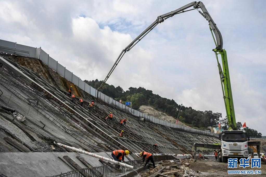 连日来,在位于广西灵山县的平陆运河马道枢纽建设现场,工人们加紧施工,建设项目正按计划有序推进。