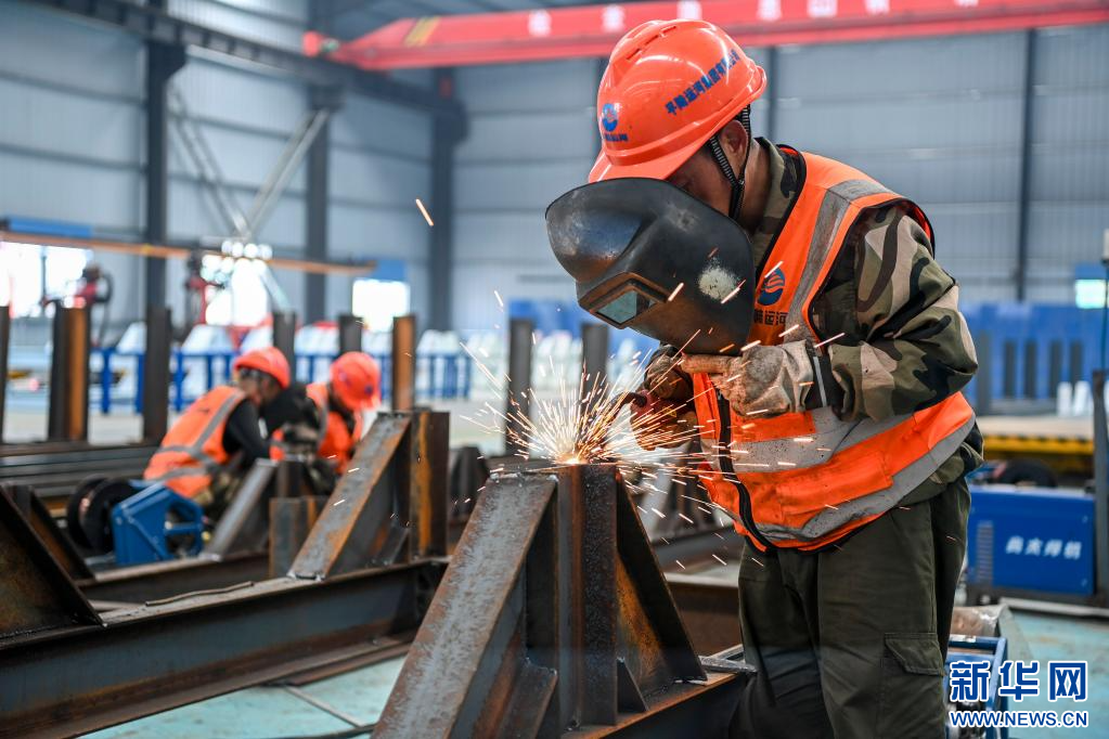 7月1日,在平陆运河马道枢纽建设现场,工人在进行焊接作业。